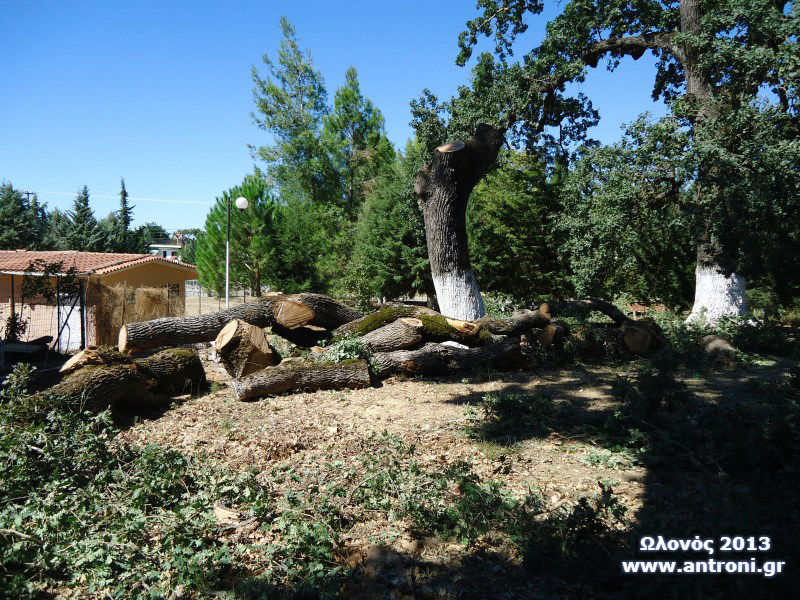 Όταν βρέθηκε ο ιδιώτης με το ανυψωτικό μηχάνημα προκειμένου να κλαδέψει τα ενοχλητικά κλαδιά, οι «ανεγκέφαλοι», βάλθηκαν να ξεκάνουν το όμορφο δασάκι, και προχώρησαν και υλοτόμησαν εξ' ολοκλήρου μία δρυ, έκοψαν αμέσως την επόμενη και στην συνέχεια έκοψαν και μια τεράστια κουκουναριά.